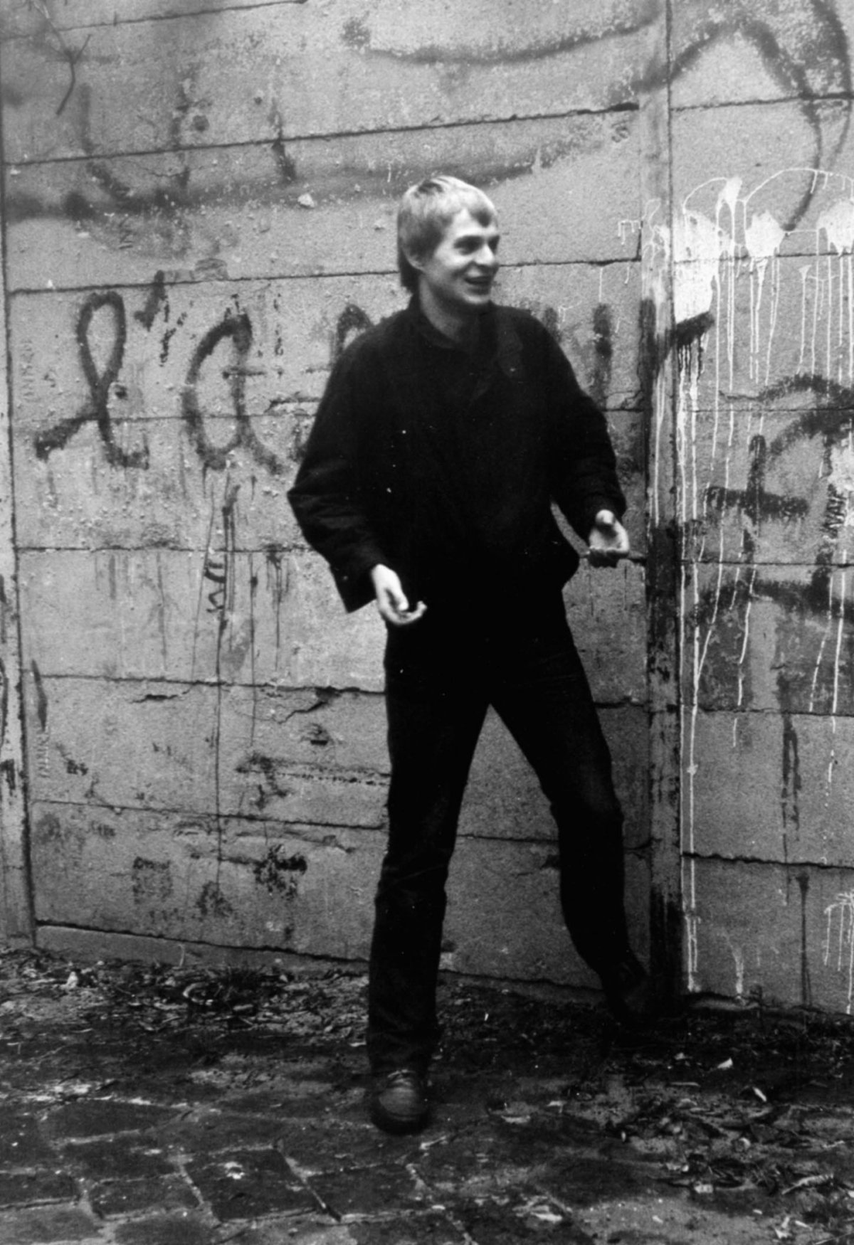 Berlin 1987, auf einem Hinterhof im Bezirk Prenzlauer Berg. Die IFM will Petra Kelly und Gerd Bastian eine Fotomontage schenken, auf der alle Mitarbeiter abgebildet sind. Hier eine Aufnahme von Peter Grimm für das geplante Projekt, das dann aber nicht verwirklicht wird. Quelle: Robert-Havemann-Gesellschaft / RHG_Fo_HAB_11328
